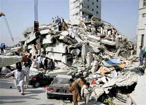 These include the Main Frontal thrust, the Main Central thrust, the Main boundary thrust, and the Main Mantle thrust. These thrust faults have a sinuous trace as they arc across the foothills in northern India and into northern Pakistan. Near the town of Muzaffarabad, about 10 km southwest of the earthquake epicenter, active thrust faults that strike northwest-southeast have deformed and warped Pleistocene alluvial-fan surfaces into anticlinal ridges. The strike and dip direction of these thrust faults is compatible with the style of faulting indicated by the focal mechanism from the nearby M 7.6 earthquake.