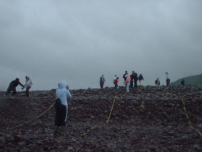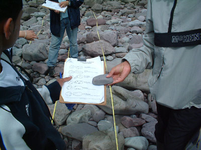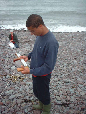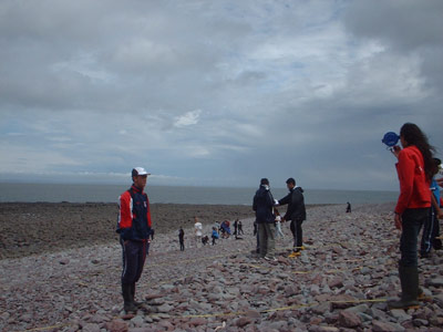 Above: Beach Profile measurements using clinometer and tape at a new facet. |