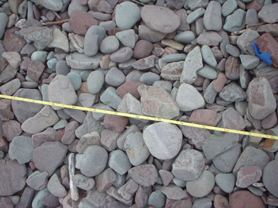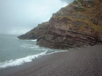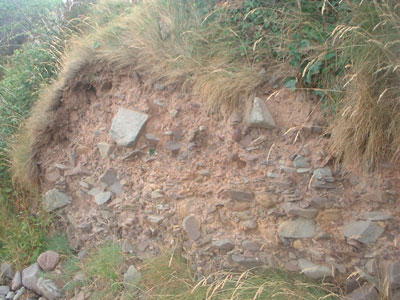 Above: Soft, Red Marl with sharp, angular rocks embedded within the Marl.
