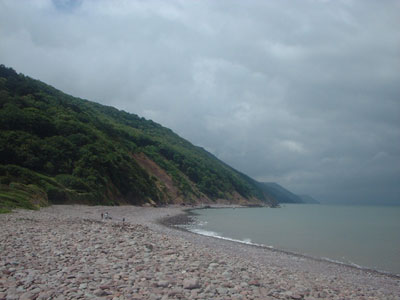 Above: Hurlstone Point - Hard, resistant Quartzite rock, which acts as a natural groyne at Hurlstoen point, preventing beach material from moving further east and explaining why the beach is so large at this point. |