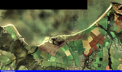 Above: Satelleite Image of Porlock Bay showing Gore Point (west) and Hurlstone Point (right) |